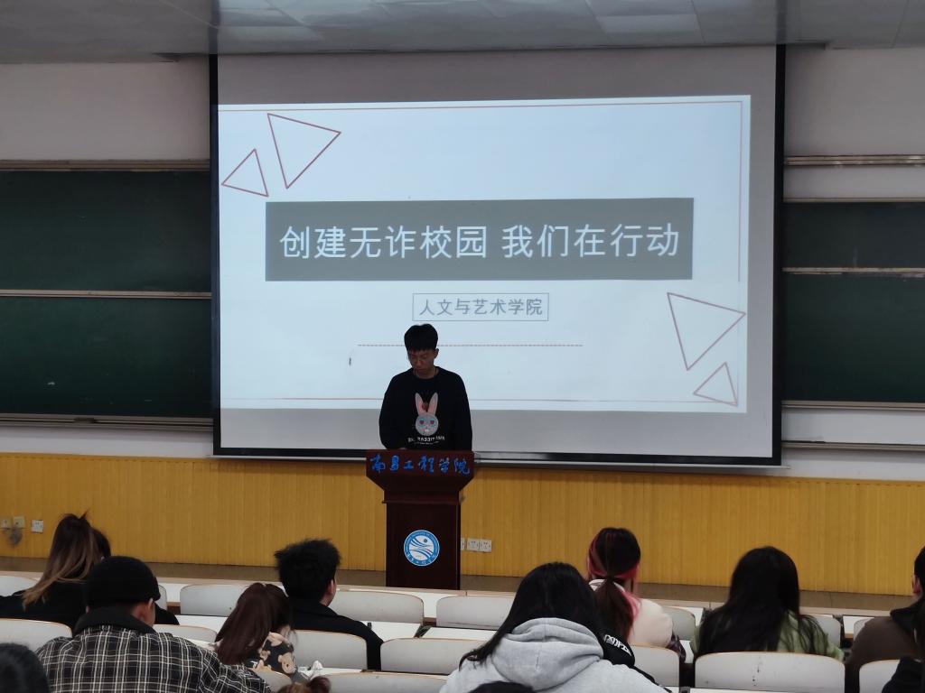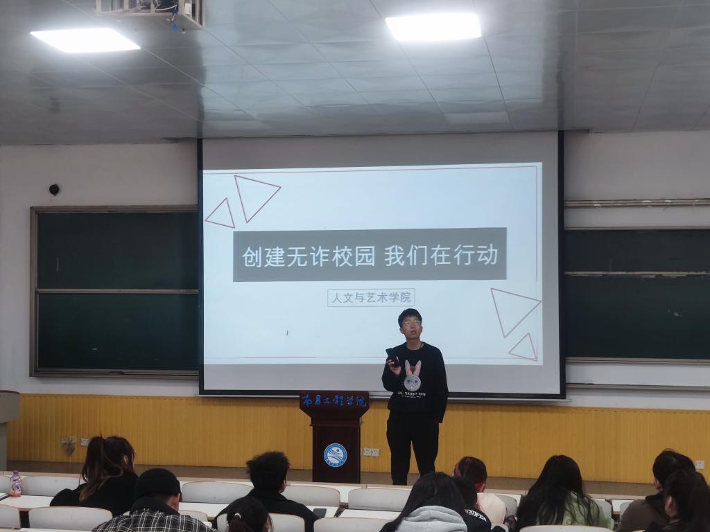 为切实加强我院师生防范电信诈骗的意识和能力,有效遏制电信诈骗案件在校园高发的势头,维护广大师生的财产安全,人文艺术学院团委于12月1日中午在教学楼南大楼C105开展“无诈校园 我们在行动”主题教育,beat365在线唯一官网党委副书记王锐,团委副书记丁蓓蒂出席,全体团学干部参加。