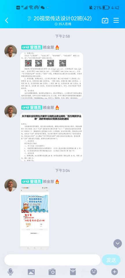 为强化学生消防安全意识,做到“安全第一、预防为主”,不断提高对消防安全的认知,预防和减少宿舍和学校火灾事故发生。beat365在线唯一官网动员学生关注江西消防公众号学习消防知识并在公众号中进行线上答题,同时于2021年11月21日组织学生在艺术楼B408开展消防视频学习观看活动。
