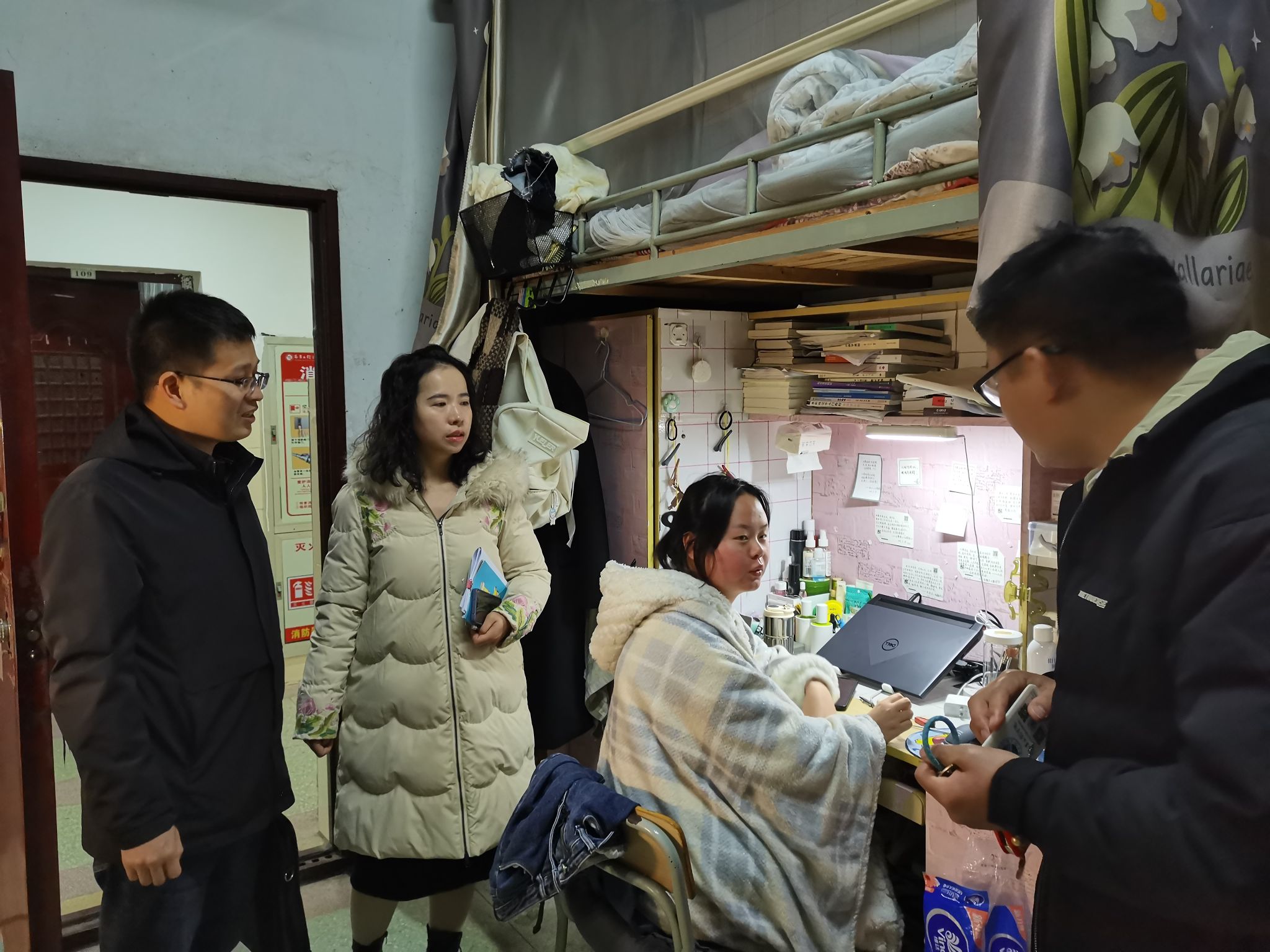 为进一步加强学生宿舍安全卫生教育及管理,消除安全隐患,创建安全、整洁、文明的生活环境。2023年12月3日,beat365在线唯一官网党委副书记黄海平、分团委书记丁蓓蒂、辅导员兰龙焱一行前往学生寝室4栋检查宿舍卫生环境和安全。