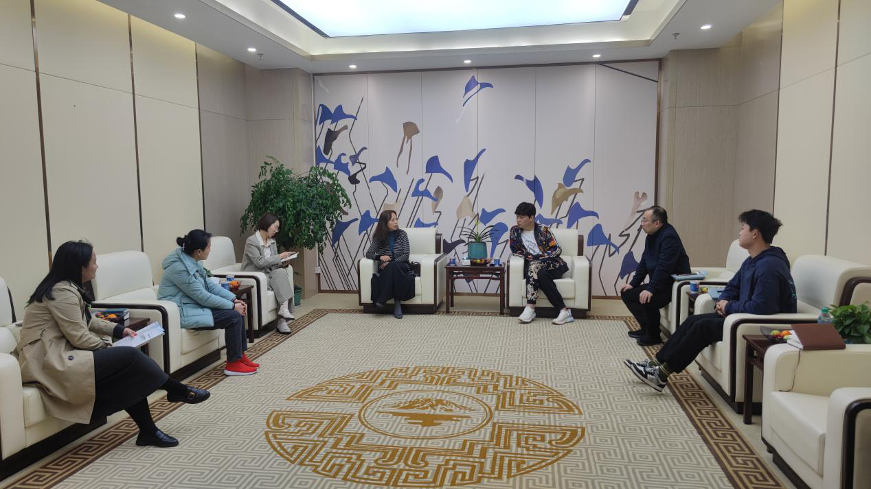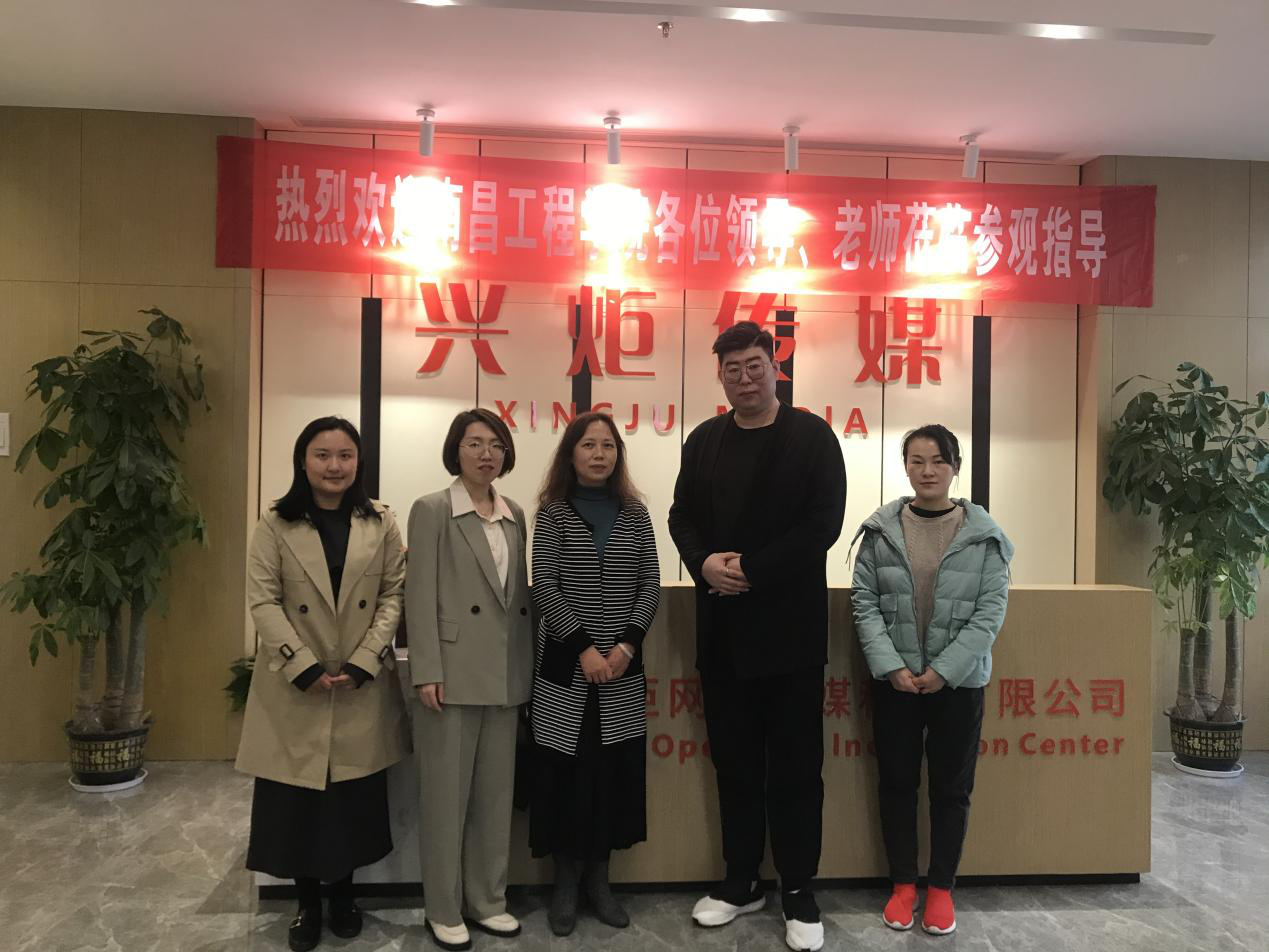 2023年3月10日下午,beat365在线唯一官网党委副书记王锐及数字与媒体艺术专业负责人刘焰、专业教师涂冠萍、辅导员张淑华,一行四人赴江西兴巨网络传媒科技有限责任公司进行考察调研。在江西省赣江新区管委会企业服务部刘军部长、公司代表的陪同下,学院一行首先参观了公司直播基地的直播间、演播室等场地,随后双方就产教融合、校企合作进行了深度交流。