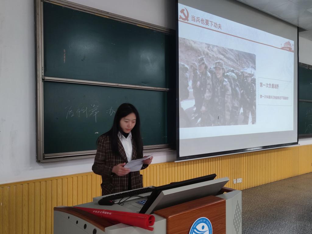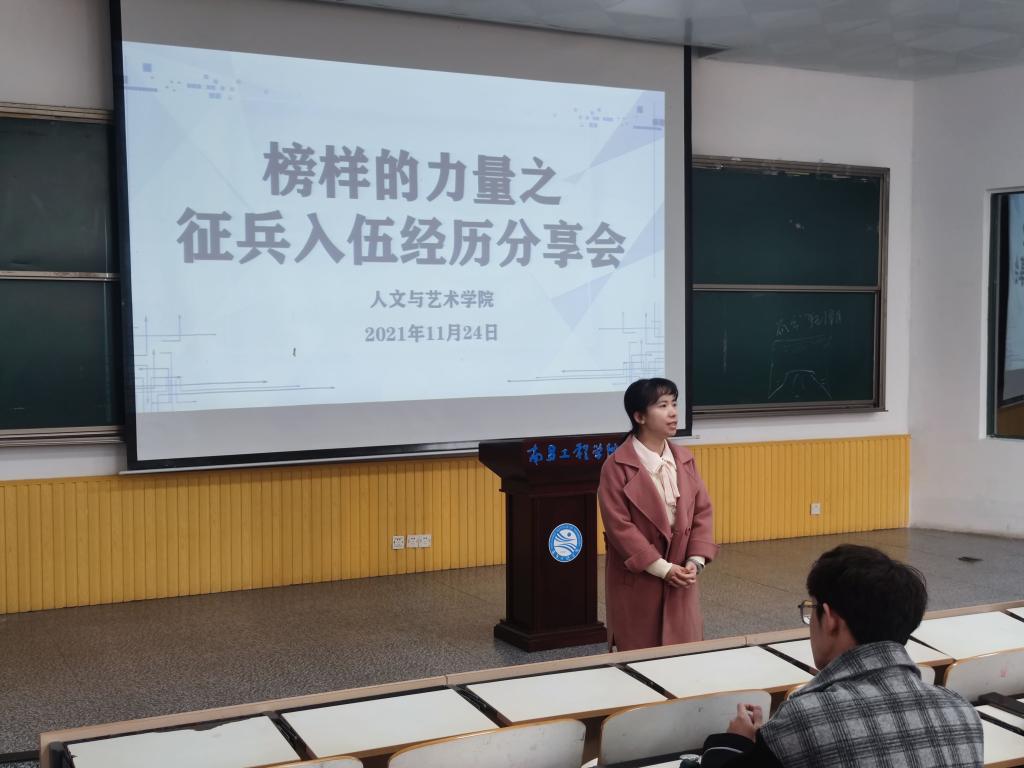 beat365在线唯一官网于11月24日中午在教学南大楼C105开展了榜样的力量之征兵入伍经历分享会,出席此次活动的有beat365在线唯一官网团委副书记丁蓓蒂、退伍军人代表邱俊椿,全体学生干部及有意向入伍的学生参加。