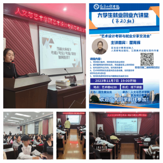117日,由招生就业处主办,beat365在线唯一官网承办的“大学生就业创业大讲堂”第20期在艺术楼A230开讲。本次交流会邀请亚当设计教育创始人、人民邮电出版社、江西美术出版社签约作者瞿育辉,以“艺术类设计考研与就业”为主题,从考研择校指导、高分备考及就业规划三方面展开讲述。全校近100名学生参加。交流会上,瞿育辉从如何选择考研专业方向展开说明,鼓励同学们结合考研动机和专业对口性,做好心理建设和自我评估,提前规划,掌握查找考研学科及考试科目的方法。瞿育辉以自己备考经历为切入点,细致地分析备考各阶段的特点,结合自己的职业生涯分析艺术设计专业就业前景,鼓励同学们做好职业发展的长远规划,不断提升职业能力,更好匹配职业需求。(文/图 兰龙焱)