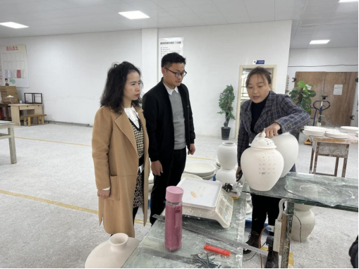 走访期间,景涵有限公司相关负责人带领走访组观摩和体验了制陶的流程,介绍了公司的发展历程、生产经营、优势特色、企业文化、人才需求和未来规划等情况。