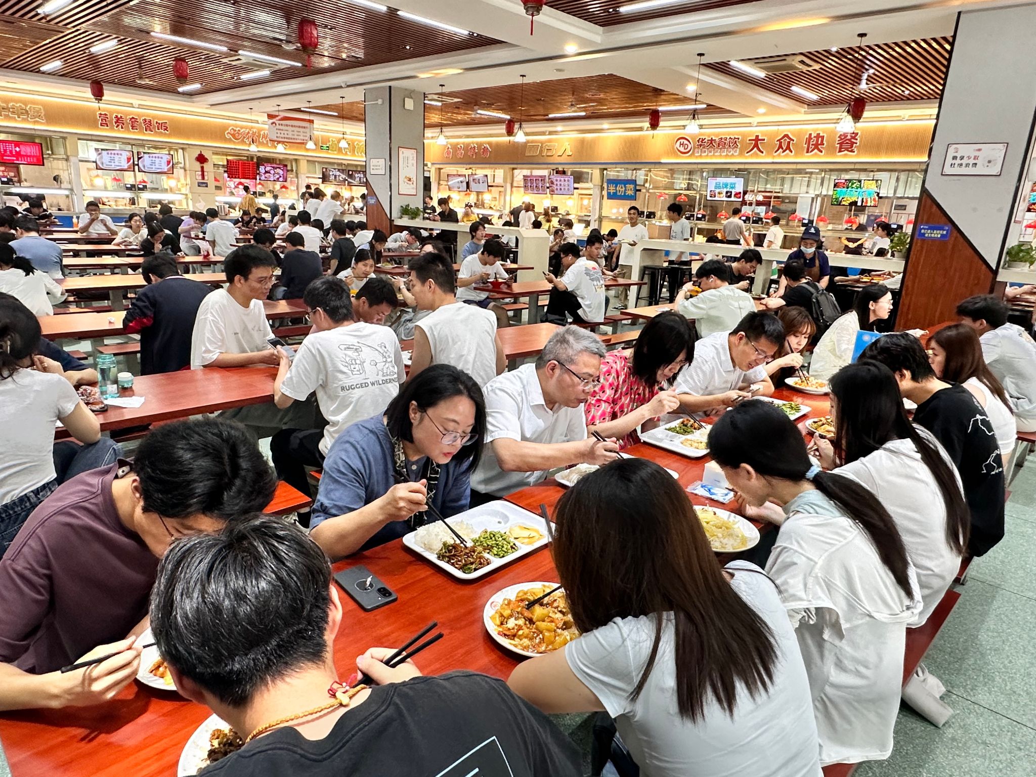 5月27日中午,殷安全在润园食堂二楼餐厅与学生代表共进午餐,仔细询问同学们的学习和生活情况,了解同学们对教学、管理和后勤服务等方面的意见建议。