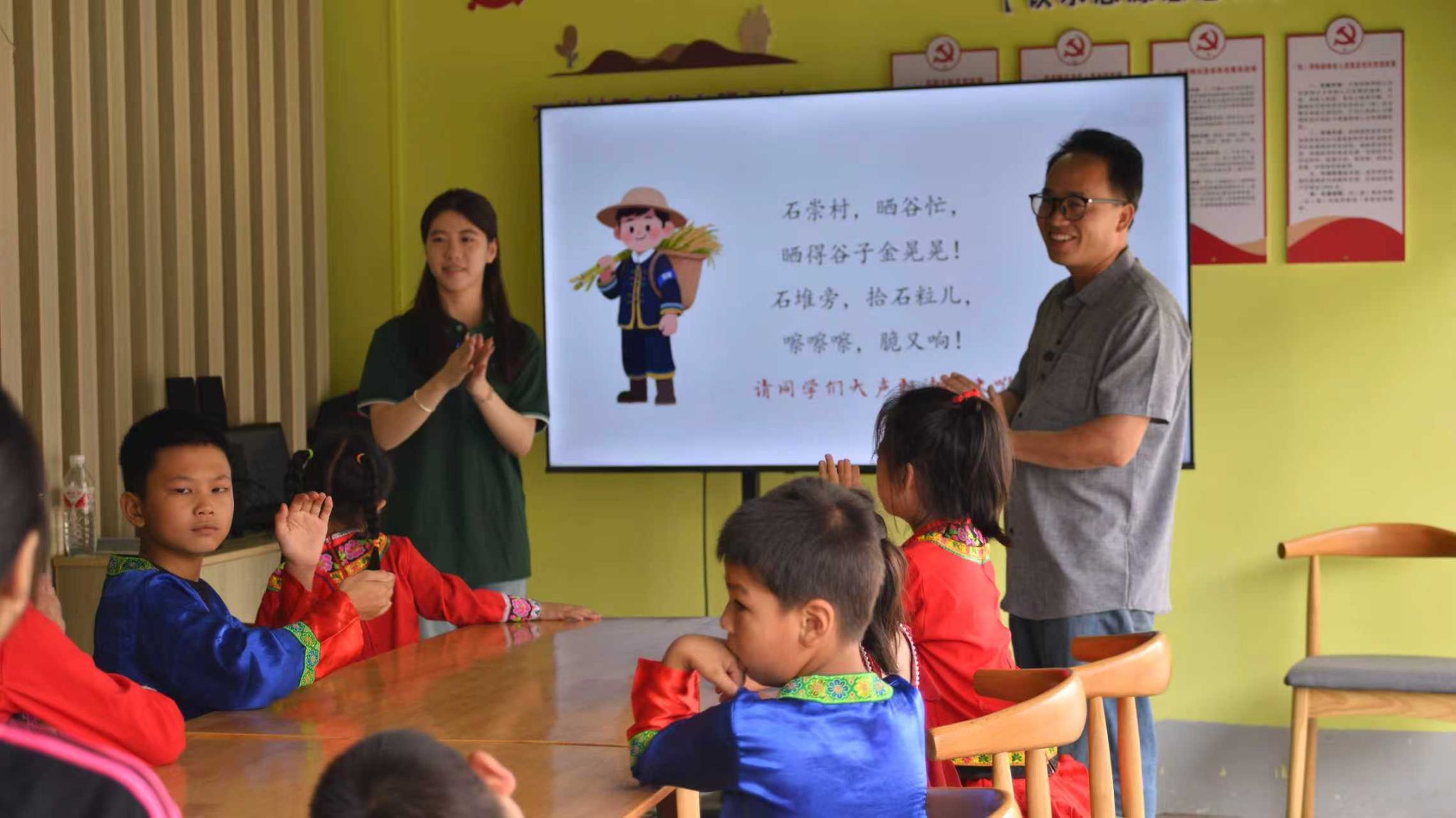 “我们不仅教发音,更教如何用普通话讲好客家故事。”在石崇村的推普课堂上,一首原创歌谣《石崇伢子》正在传唱。这是实践团破解“语言壁垒”的创新尝试——将普通话教学植根于客家文化土壤。团队深入调研当地农耕文化及非遗民俗传统,通过国家智慧教育公共服务平台、“语博”等数字化资源,根据不同群体设计分层教学方案,村民既能系统学习语言规范,又能增强文化认同。