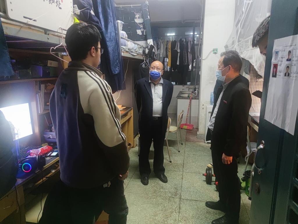 在疫情防控期间,学生宿舍不仅仅是生活场所也是学习场所,校领导一直关心学生的线上学习、生活和心理情况,曾多次走访学生宿舍。校领导一行在走访过程中与同学们进行了亲切交流,详细了解学生们的心理情况、线上学习情况及封闭管理后的校园生活。校领导们还不断叮嘱同学们要严格遵守疫情防控期间校园管理要求、做好疫情防控常态化下的自我管理和个人防护,养成良好的生活卫生习惯,注意身体健康,保持积极的心理状态,共同营造安全有序的校园环境。随后,校领导一行还去看望慰问了我院在校内疫情防控执勤点的学生志愿者,详细了解了学生志愿者值守轮换、后勤保障等工作情况,并高度赞扬了学生志愿者们“逆行”而上、挺身而出的勇气和毅力。