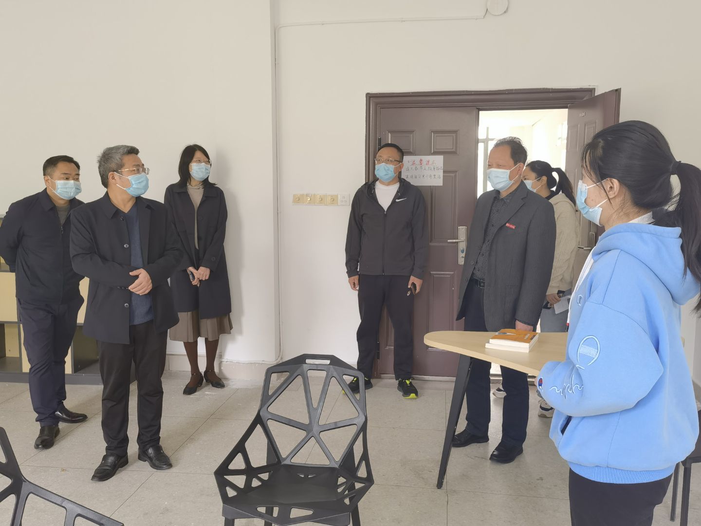 走访过程中,校领导与同学们进行亲切的交谈,详细了解当前我院学生线上学习和生活情况,仔细询问他们在学习和生活等方面是否有困难。校领导强调,疫情仍处在严峻复杂阶段,大家要严格落实学校疫情防控工作的相关要求,做好防护,注意保持宿舍卫生,适当锻炼身体,减少人员聚集,坚持每日三次的体温检查、健康打卡和适时核酸检测,做到不漏报、不隐瞒、不谎报,同时希望同学们在当前疫情防控的关键时刻保持良好心态,合理规划时间,安心学习生活,遇到困难及时与老师沟通,学校将竭尽全力帮助协调解决。