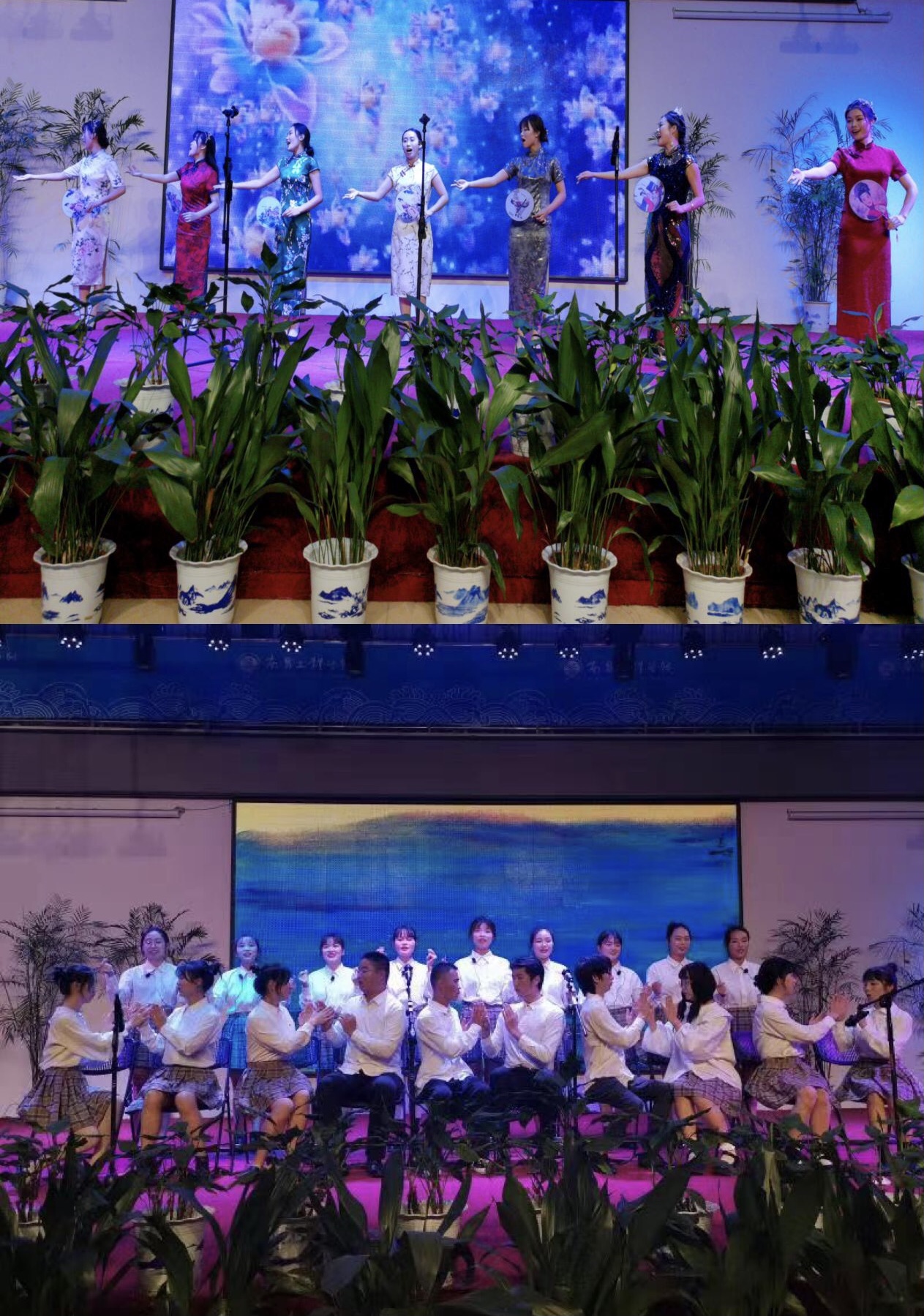 舞台亮起,随着第四批国家级非物质文化遗产名录收录歌曲《渔歌》由我院学生唱响,音乐会正式开始。紧随其后《西班牙女郎》、《红豆词》、《茉莉花》、《风萧瑟》等一首首经典曲目被唱响,充分展示了我院学生的爱国热情以及专业能力。最后音乐会全体学生共同演唱《从前慢》,在校友的祝福视频中音乐会圆满落下了帷幕。