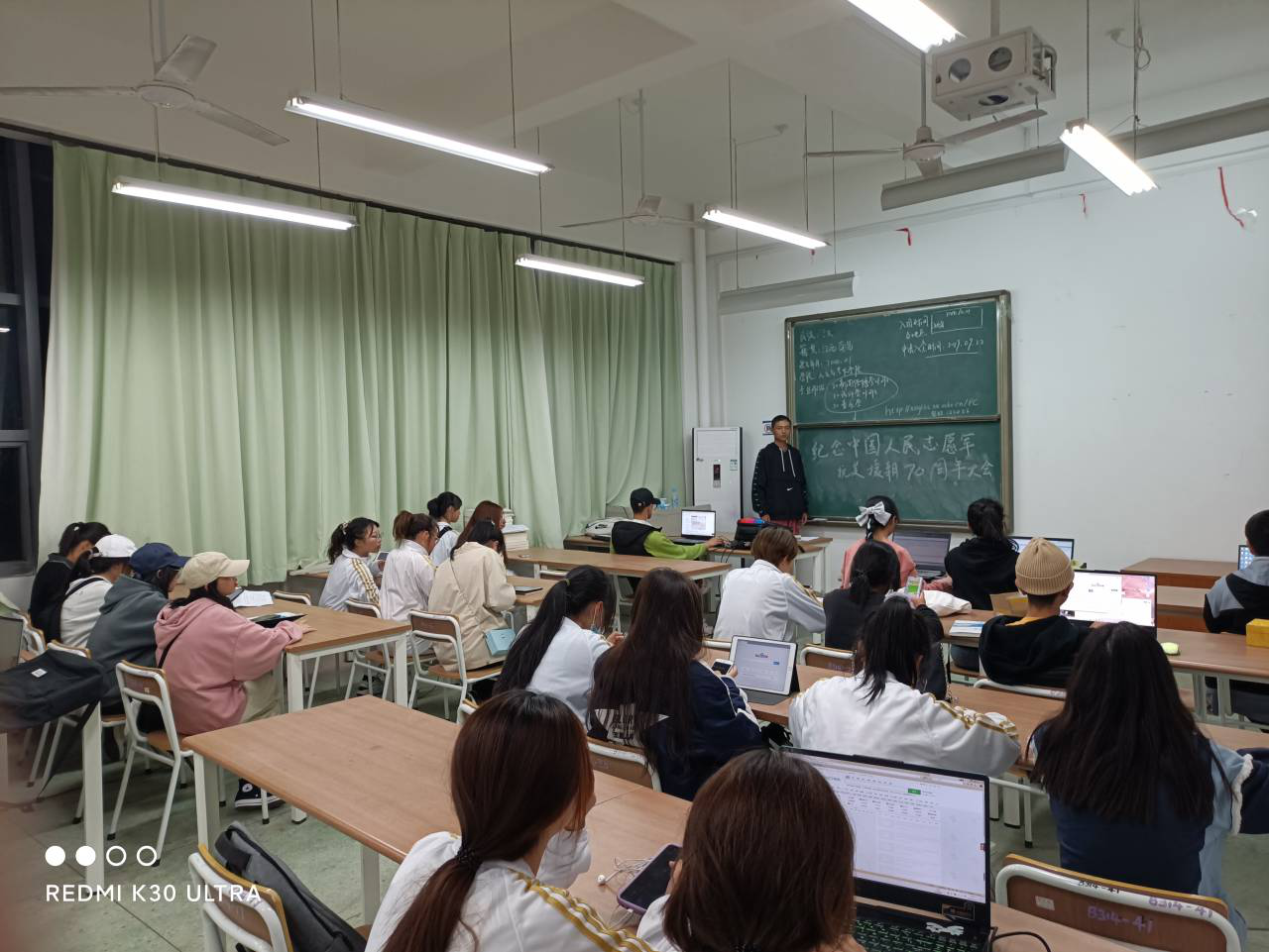 10月23日上午,纪念中国人民志愿军抗美援朝出国作战70周年大会在京隆重举行,习近平总书记出席大会并发表了重要讲话。会上,习近平总书记指出,伟大抗美援朝精神是弥足珍贵的精神财富。为向革命先烈致敬,加快建设我国军事强国伟大事业,深入学习贯彻习近平总书记重要讲话精神,beat365在线唯一官网于各班级发起了组织观看纪念中国人民志愿军抗美援朝出国作战70周年大会。