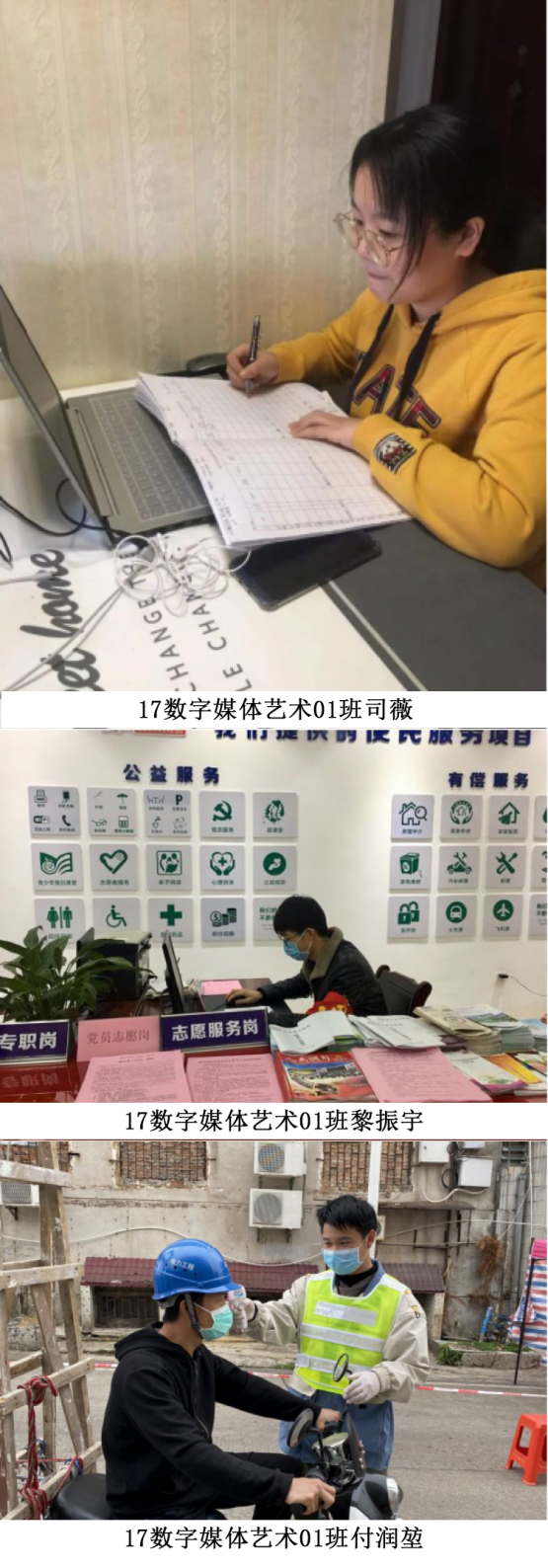 南昌工程学院beat365在线唯一官网数字媒体艺术专业的同学,积极响应学校和学院的号召,主动投身战疫一线。他们是16数字媒体艺术的周晋、17数字媒体艺术的司薇、黎振宇,18数字媒体艺术付润堃,他们用实际行动践行了一名合格的新时期有责任、有担当的当代大学生的思想风貌。
