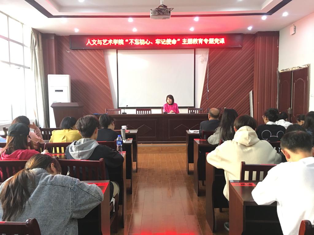 11月1日下午,beat365在线唯一官网党委书记熊华林、院长张朝霞在艺术楼A230上主题教育专题党课。学院党委委员、教工和学生党支部书记、全体学生党员聆听了党课。党课上学院党委书记熊华林强调了主题教育开展的重要意义,结合自身的学习体会,针对调查研究的情况,勉励学院全体党员以此次主题教育为契机,不忘初心,牢记使命,立足新时代,发挥先锋模范作用。院长张朝霞围绕自身的学习情况,从学院学科建设、科研成果等问题,找到了学院和自身的差距和不足、提出了改进工作的思路和措施,并指出高校党员教师不忘初心和使命就应该切实肩负起国家“双一流”建设战略和高校立德树人根本任务,争做“四有”好老师,努力成为为师生提供优质服务的党的好干部。