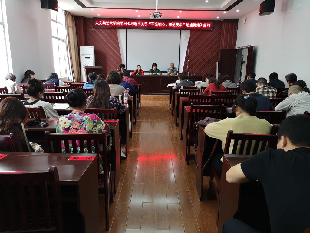 在深入学习贯彻习近平新时代中国特色社会主义思想,开展“不忘初心、牢记使命”主题教育之际,10月8日下午2点,beat365在线唯一官网党委组织全体教师党员于艺术楼A230集中学习《习近平关于“不忘初心、牢记使命”论述摘编》金句。此次集中学习由学院党委书记熊华林领学,全体教师党员参加了这次学习。