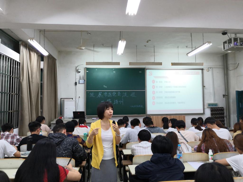 为使我院同学加深对中国共产党的认识,更加了解入党的相关流程,5月15日,人文与艺术学院在教学楼北楼B114开展了学生党员发展工作培训会议,本次培训会由学院学生党支部书记丁蓓蒂主持。各学生党支部支委和入党积极分子参加了此次培训。