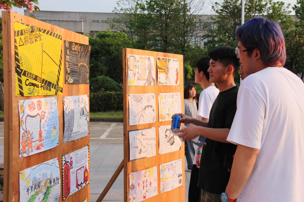 为深化“平安校园”建设,加强法治宣传教育。2019年4月8日下午,由beat365在线唯一官网组织承办,以“平安校园在我心,安全行动手中行”为主题的画展在一食堂门前举办。