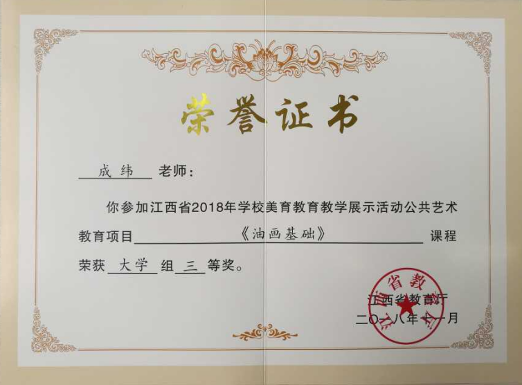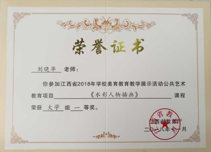 近日,接“赣教体艺字〔2018〕26号”文件通报,在江西省教育厅举办的首届学校美育教育教学展示活动中,我校beat365在线唯一官网选送的三门课程全部获奖。其中刘晓华的参赛课程《水彩人物插画》获得公共艺术教育项目大学组一等奖;王德信的参赛课程《书画基础》获得公共艺术教育项目大学组二等奖;成纬的参赛课程《书画基础》获得公共艺术教育项目大学组三等奖。(文、图/王丹)