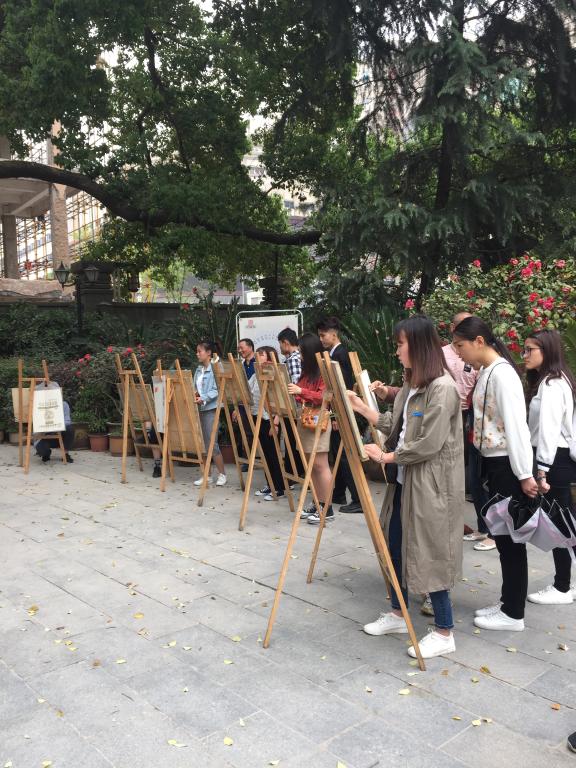 首先,同学们随馆内讲解员回顾先辈们的不朽事迹,观看南昌八一起义纪念馆中的照片、书籍、遗物等各类珍贵资料。大量的图片文字和实物,再现了当年风雷激荡的岁月,结合了现代的多媒体技术,生动地还原了中国共产党在南昌打响武装反抗国民党反动派第一枪的过程,接着,全体团员站在伟人雕塑下庄重宣誓,重温入团誓词。最后团员们拿出画板,对八一馆的建筑物和英雄雕塑进行现场素描,15音乐学宋逸杰演唱了自己的原创歌曲《记念》,将八一馆之肃穆作于画上,将八一之行的感慨咏于歌中。