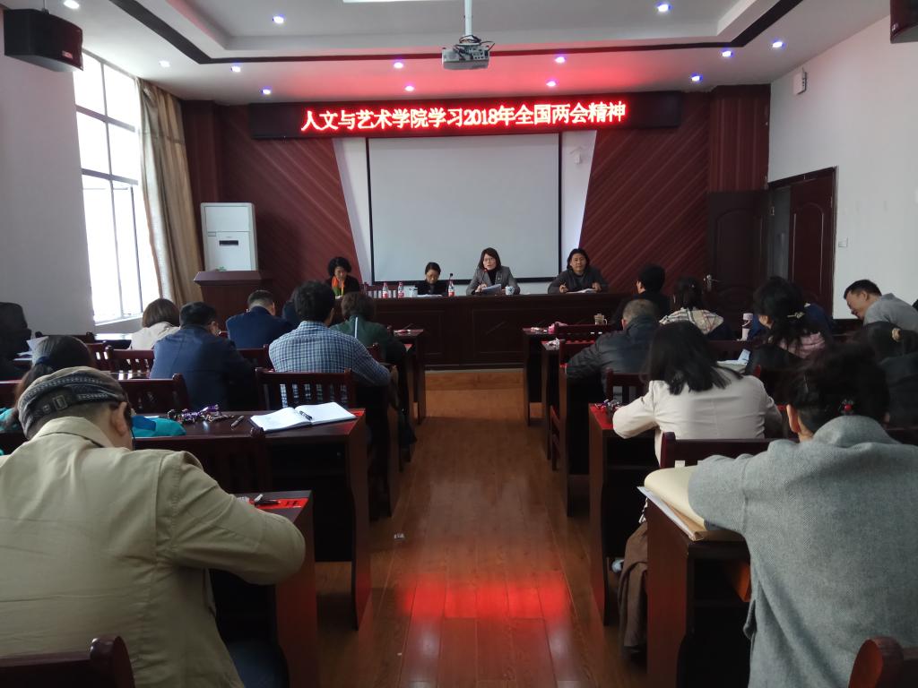 3月27日下午,beat365在线唯一官网在艺术楼A230召开全体教职工大会,组织全体教师学习2018年全国两会精神和学校三届四次“双代会”精神。