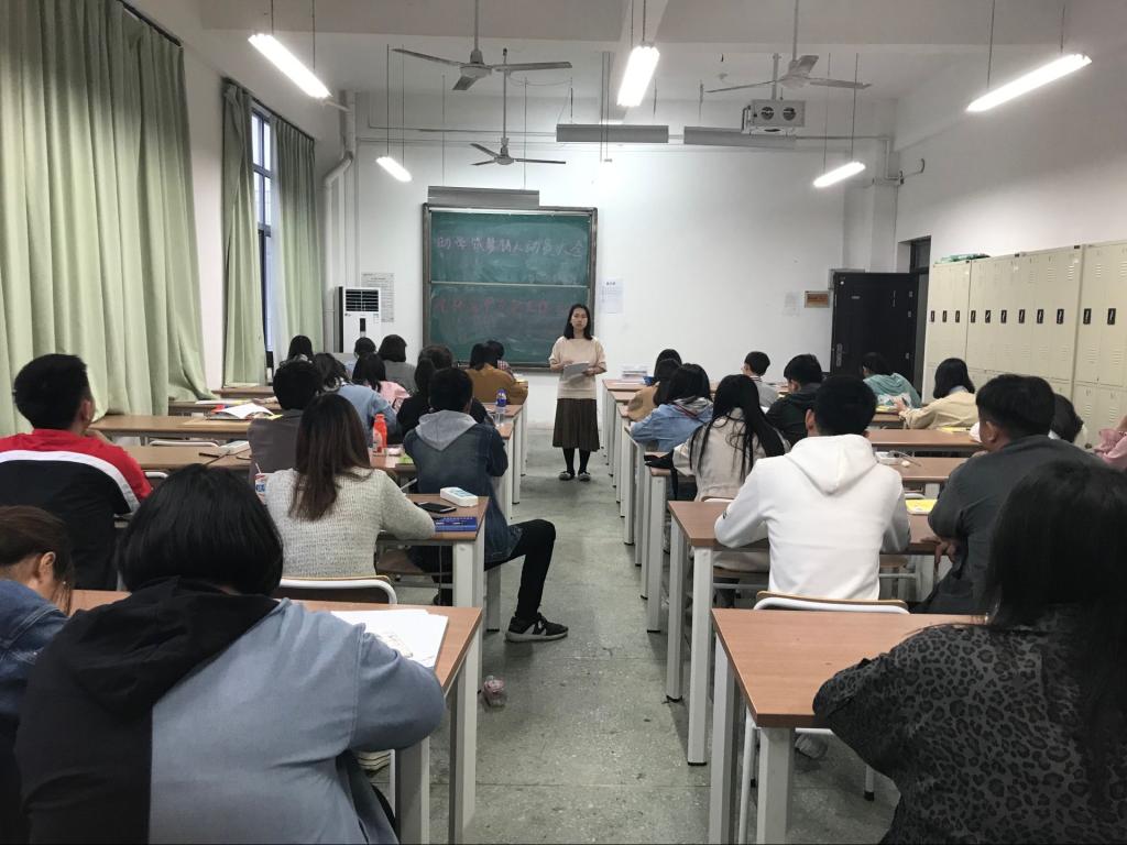 会上,丁老师首先对该活动做了一个简要的介绍,并对该比赛的具体活动安排进行了说明,今年比赛项目更丰富,除了每年例行的征文、演讲比赛环节,今年还增设了知识竞赛、视频评比及宣传画设计的竞赛项目,通过多种活动形式来进一步宣传国家对大学生的资助政策,帮助学生更好地了解高校学生资助政策,丁老师希望各班级资助委员做好动员工作,及时准确将该活动传达给班级同学,鼓励同学们积极参赛。