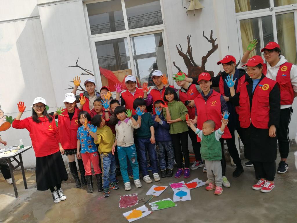 由于缺乏专业指导,阳光成长中心的墙面一直都是纯白色,长期生活在这样的环境下,并不利于在中心贫困孤儿的健康心理养成。为了帮助孩子们营造温馨和谐的生活环境,志愿者们以“童趣运动”和“科技畅想”为俩个主题绘制了“快乐墙”。阳光成长中心的孩子们也积极参与到活动中,与志愿者们共同完成了“成长树”的创作,在墙面上留下了自己的掌印。孩子们在与志愿者们的共同互动中露出了开心的笑容,他们天真烂漫的笑脸在阳光下定格成了一幅幅美丽的画面。