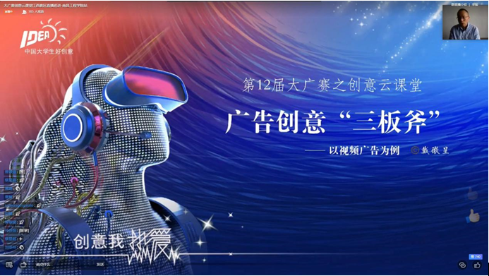 5月15日至6月15日,我院邀请全国大广赛江西赛区副秘书长戴微星,通过网络在线课堂形式为讲授全国大广赛的发展历程、广告创意“三板斧”、第十二届大广赛命题解析、视频广告创意与执行等内容,本次活动中,线上集中辅导共计6次,每次3小时左右,全院共200余师生参加此次系列辅导活动。