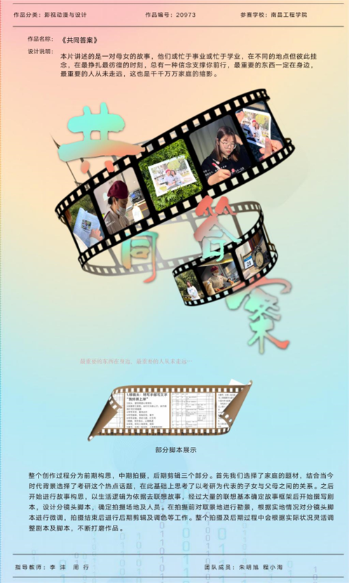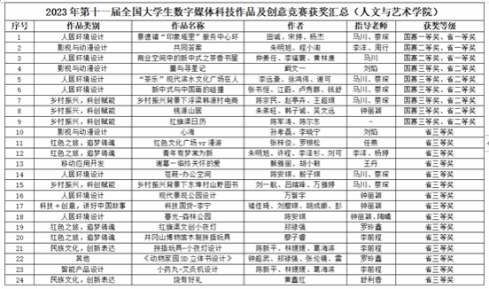 全国大学生数字媒体科技作品及创意竞赛为中国高等教育学会大学生学科竞赛排行榜单中备受认可的赛事之一。该竞赛项目融合了科技与艺术,引领着大学生创新创业和实践技能提升的潮流。它受到了包括“985”、“211”等双一流大学、普通高等院校和高职院校的广泛关注和积极支持,作品数量和质量都在逐年提升,得到了数字创意产业行业的高度认可。为推出优秀作品,我院组织专业教师悉心指导学生创作,经过校赛评审,最终精选72件作品参赛,获奖率为46%,获奖质量与数量均为历年之最。其中《景德镇“印象瑶里”服务中心环境设计》为江西省唯一一个人居环境国家一等奖作品。