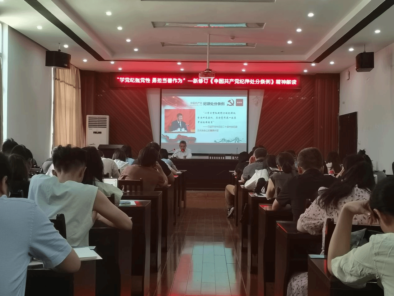 5月28日,校党委委员、纪委书记殷安全在艺术楼A230以《学党纪强党性,勇担当善作为——新修订〈中国共产党纪律处分条例〉精神解读》为题讲授党纪学习教育专题党课,beat365在线唯一官网全体教工党员到场聆听。