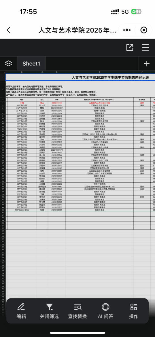 学院组织各班召开端午安全主题班会,重点围绕防溺水、防灭火、交通安全、宿舍用电安全等内容开展安全教育。通过播放溺水事故警示视频,强调“六不准”原则,组织学生签署《防溺水安全承诺书》;结合近期高校宿舍违规用电引发火灾案例,详细讲解热得快、大功率吹风机等违规电器的危害,现场演示安全插排使用规范;针对假期出行高峰,播放交通安全事故纪录片,警示学生拒乘“黑车”,提示骑行佩戴头盔。同时,学院建立“学生-班级-学院”三级去向登记机制,精准掌握学生假期动向;对全院学生宿舍开展“拉网式”排查,重点检查违规电器使用、私拉乱接电线,普及宿舍安全用电知识。