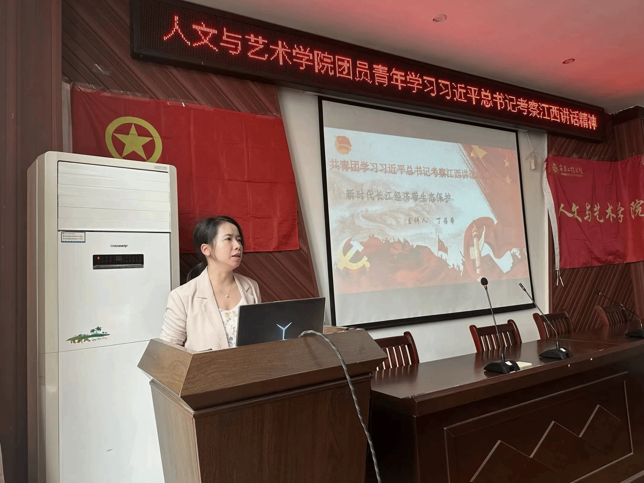 会上,丁蓓蒂还带领我院团员青年回顾学习了习近平总书记近8年来四次关于长江经济带发展召开的座谈会,让团员青年了解到长江经济带的发展事关国家大局,深刻认识了党和国家领导人对长江经济带发展的重视。