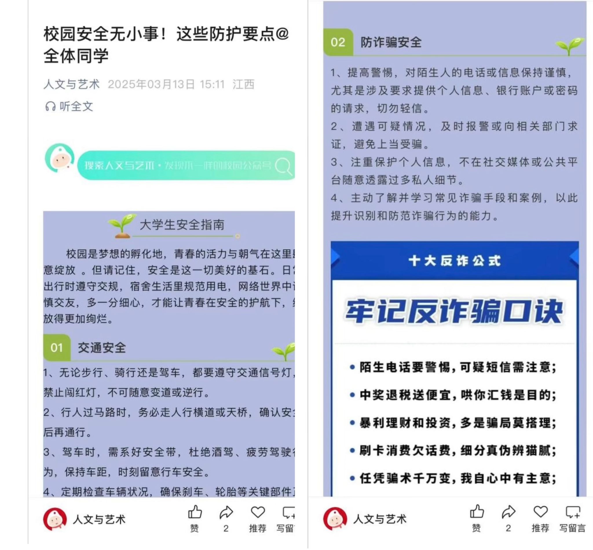 活动中,学院通过多种途径和方式开展宣传教育,一是各班级班主任通过开展了平安建设主题班会向同学们讲解平安建设的重要意义和参与方式,提高学生在思想上的重视程度。二是在学院微信公众号和社区宣传栏进行平安建设主题宣传,内容包括宣传标语、安全案例、反诈案例等,通过线上线下相结合的方式进一步扩大宣传覆盖面。三是学院于3月18日晚在教学北大楼C104召开了平安建设主题宣讲,宣讲会内容涵盖交通安全、防诈骗、宿舍安全、防溺水和雷电安全等方面,宣讲中,宣讲员通过详细讲解安全知识,结合实际案例,引导学生充分认识到安全的严重性,并学会相应的应对措施。(文/马浩哲 刘晓恋 图/陈斌)