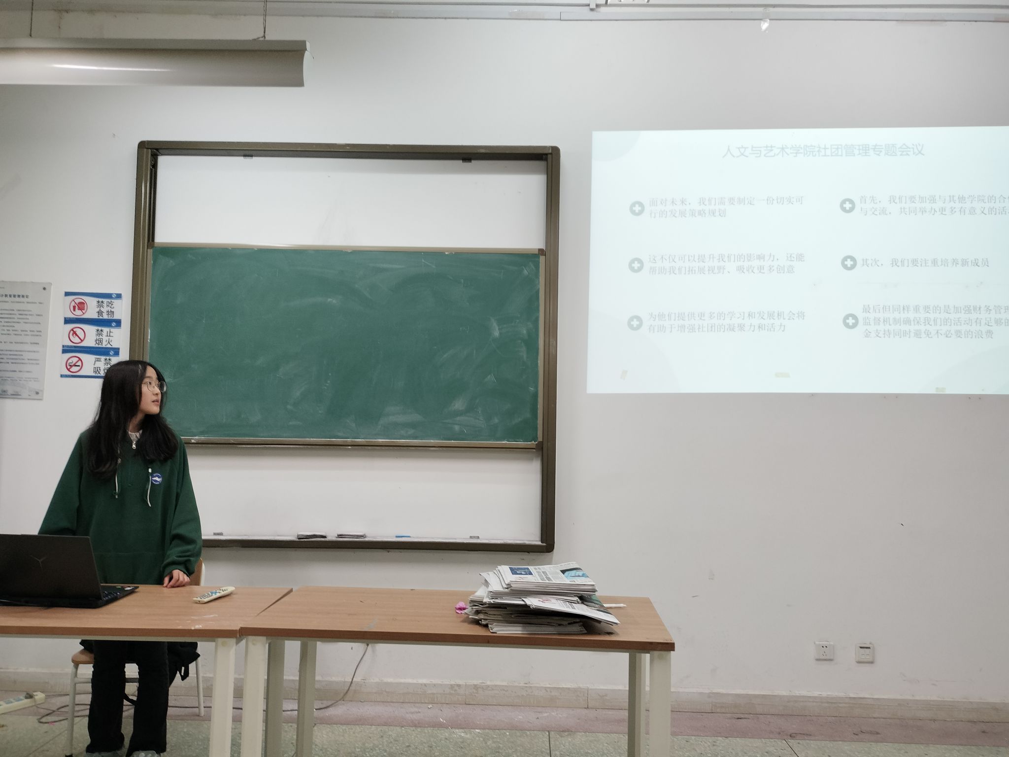 11月22日,beat365在线唯一官网于艺术楼A319举办了一场以“深化社团管理,推动各社团之间交流合作”为主题的专题会议。参与会议的有墨缘书画社、人文与艺术辩论队、文学社、美术社以及太极扇社五个社团,此次会议旨在通过提升社团管理水平,丰富学生课余生活,增强人文与艺术氛围。