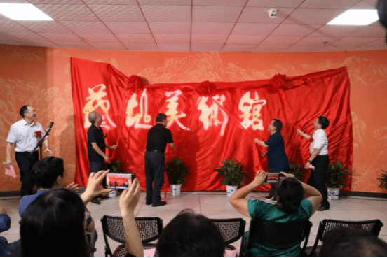 在全场热烈的掌声中,熊盛文、肖光明、汪胜前、蔡超共同为蔡超美术馆揭幕。