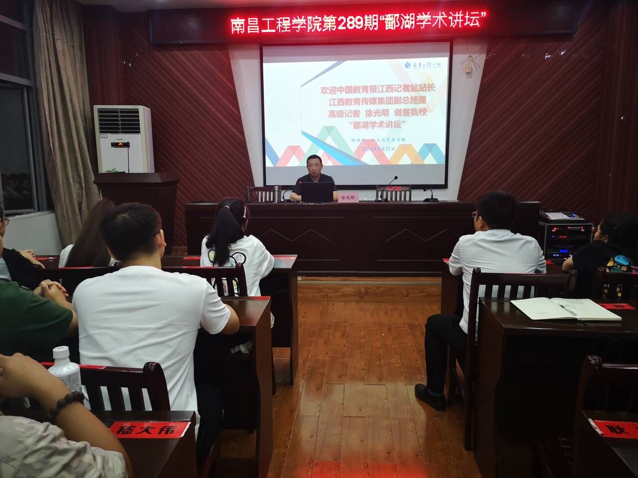 近日,中国教育报江西记者站站长、江西教育传媒集团副总经理、高级记者徐光明做客我校第289期“鄱湖学术讲坛”,在艺术楼A230会议室作题为《如何提高媒体素养》学术报告,beat365在线唯一官网师生共100余人聆听。
