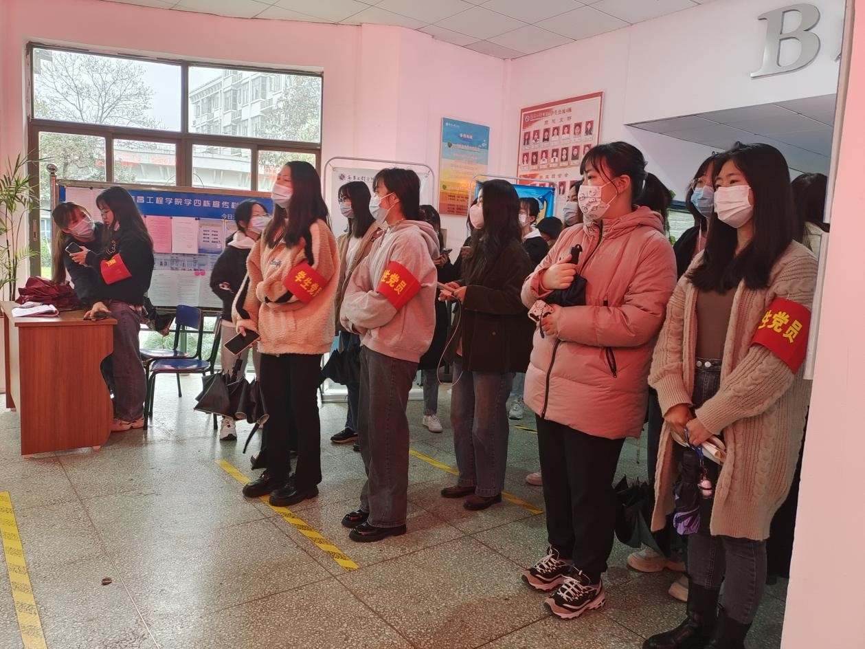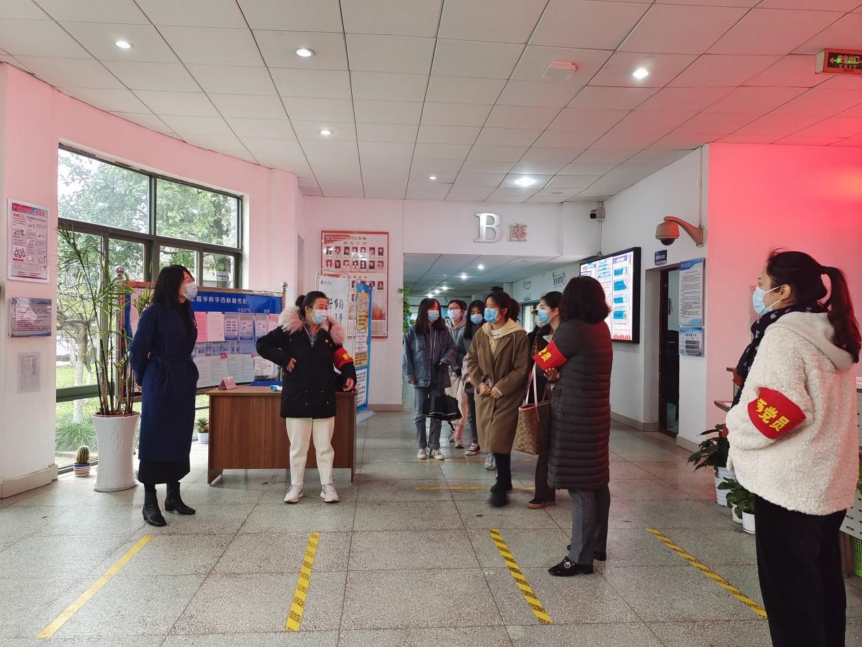 教师党员现场引导学生入场进行检测