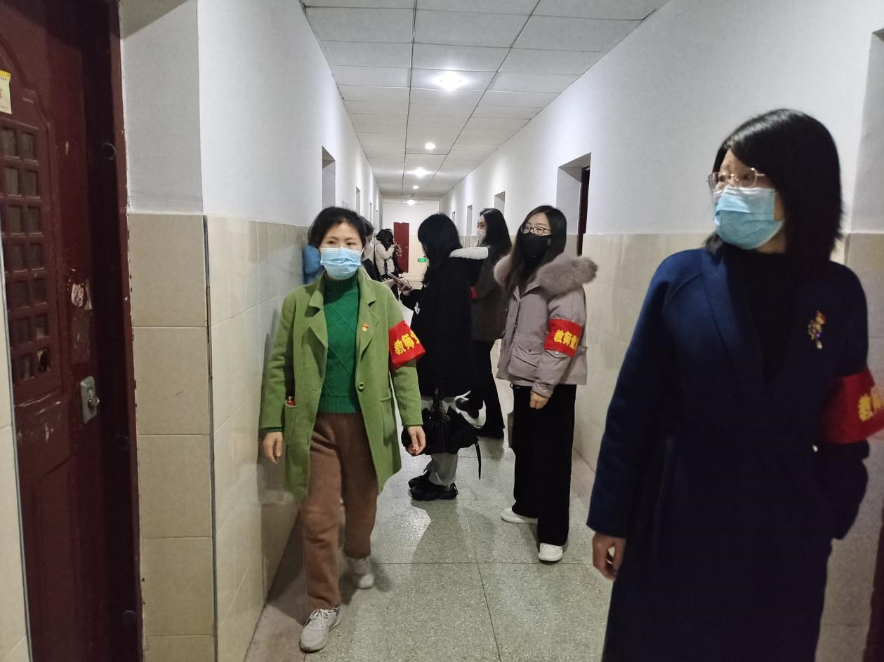 学院领导带领教师党员叫醒学生起床做核酸