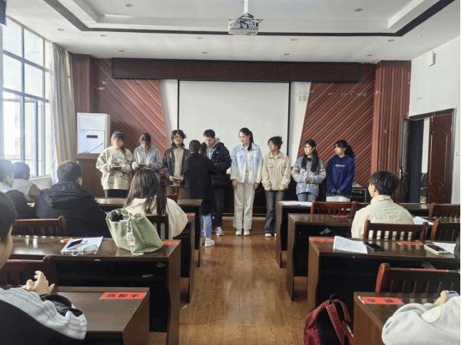 会议伊始,大家集体学习习近平总书记在江西考察时发表的重要讲话,其中谈到了加快农业农村现代化建设步伐,全面推进乡村振兴,奋力谱写中国式现代化江西篇章。会议第二项,讨论接收甘骏恩、黄心怡等八位同志为中共预备党员,接着,蒿佳杭给他们发放了党徽和党员学习笔记本。